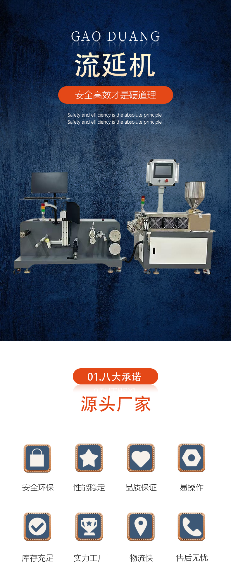 采用擠出機將熱塑性塑料熔融后,通過T型模具形成均勻熔體流延至冷卻輥表面,經冷卻定型后收卷成型